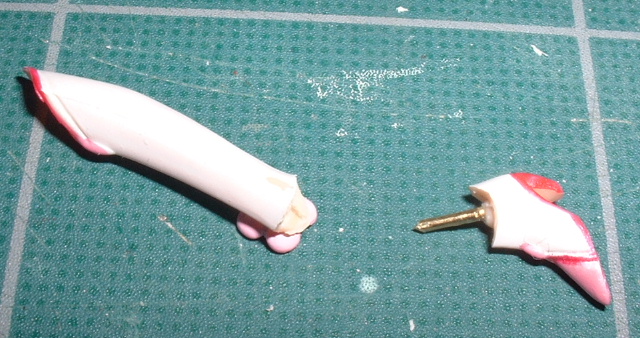 足首まわりのパーツに3ミリ穴あけてプラパイプ貫通