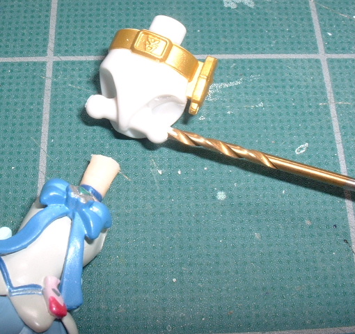 マスコットの手首を円柱状に削りだしてミクロ手首で握らせるだけ